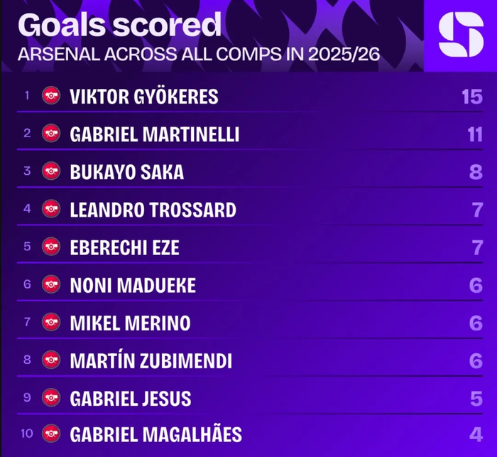本赛季哲凯赖什已经在各项赛事代表阿森纳打进15球,瑞典人是队内第一射手。
