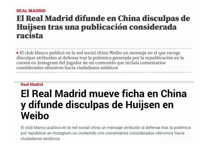 2026年2月23日,《阿斯报》、《马卡报》、《世界体育报》等多家西班牙知名媒体均对赫伊森事件进行了报道。这些知名媒体表示,皇家马德里俱乐部只在官方微博账号发表了声明,该账号主要面向中国用户,这引起了中国球迷的强烈不满,他们质疑俱乐部道歉的诚意,并要求皇马在国际平台公开发表声明。可以看出来,现在西班牙多家知名媒体也开始重视赫伊森事件了。