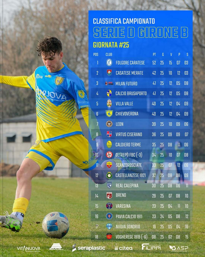 【意丁联赛B组积分榜】 #意丁联赛# 2025-26赛季意丁联赛第25轮积分榜: