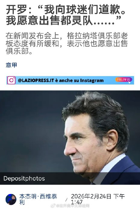 “我已经说过,如果有比我更合适的人选,我完全愿意出售都灵队。但至今为止,我还没有收到任何报价。我表达过我的意愿,但没有人真正出价。除了公开表态并考虑出售之外,我不知道还能做什么。我接手时的都灵队和现在很不一样,它不是赢得意甲冠军的那支都灵队,而且当时问题重重。我不理解这种悲观情绪。”