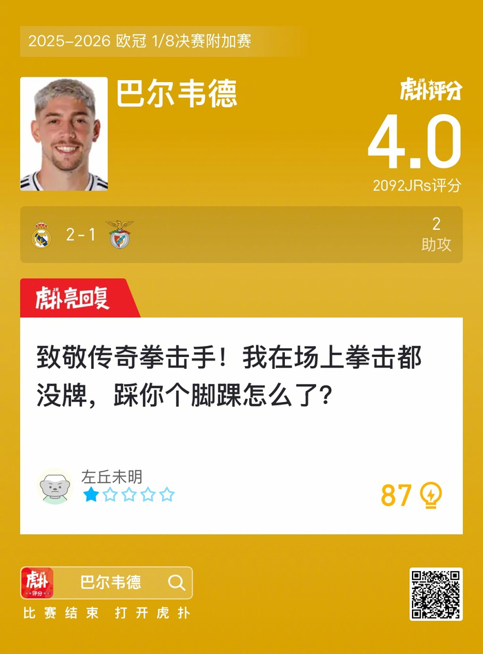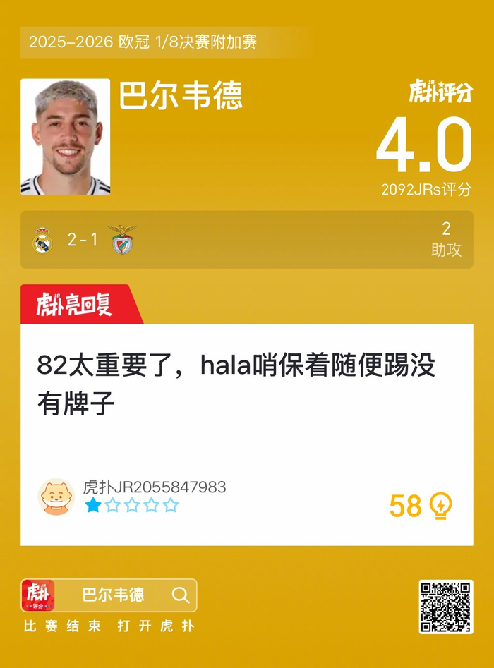 #皇马2比1本菲卡#巴尔韦德贡献两次助攻,这表现你们给几分?