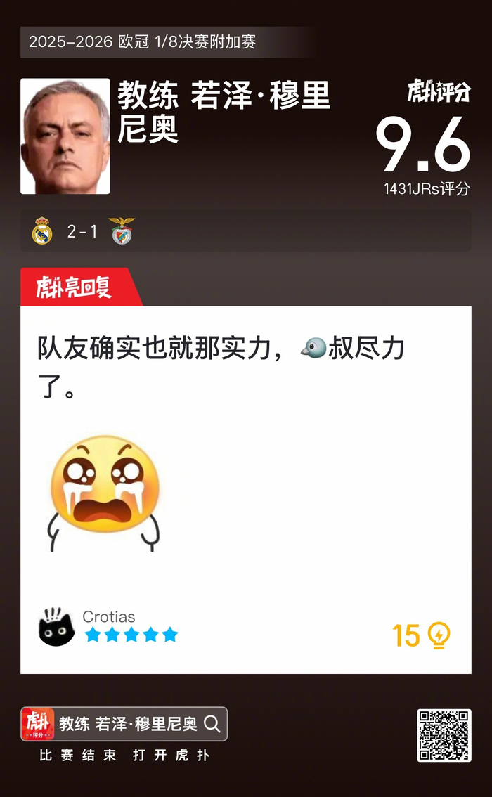 #皇马2比1本菲卡#关于穆里尼奥本场比赛的排兵布阵,你如何评价?