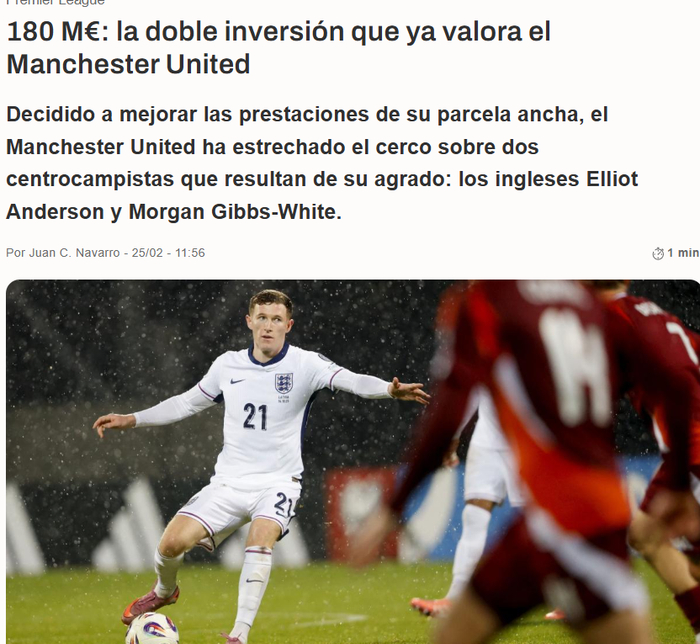 卡塞米罗已经宣布会在今夏离开,乌加特和梅努也可能离队,就算是B费这样的核心,未来也充满不确定性,因此曼联在中场的补强是必要动作。曼联的头号目标是安德森和吉布斯-怀特,这2名球员目前都效力诺丁汉森林,该队正在为保级而战,无论最终的结果如何,似乎他们都已经准备好在赛季结束后出售这2名球员。
