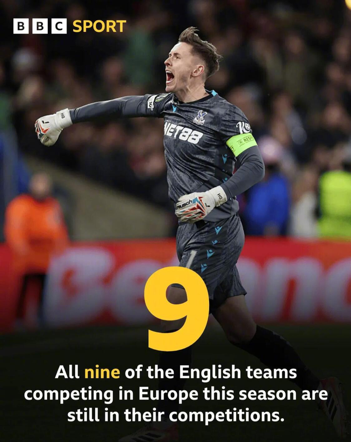 至此,本赛季9支参加欧战的英超球队全部都打进了各自赛事的16强。