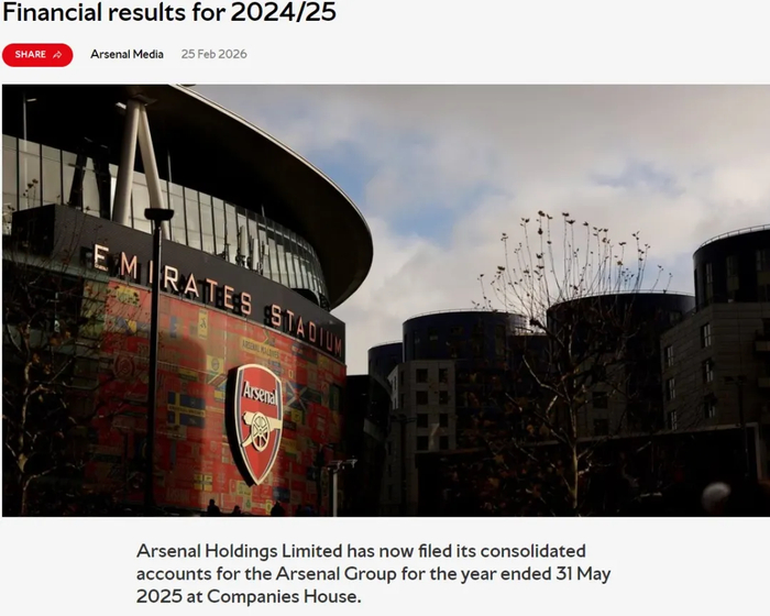 官方:阿森纳控股有限公司公布了俱乐部24-25赛季的财报。