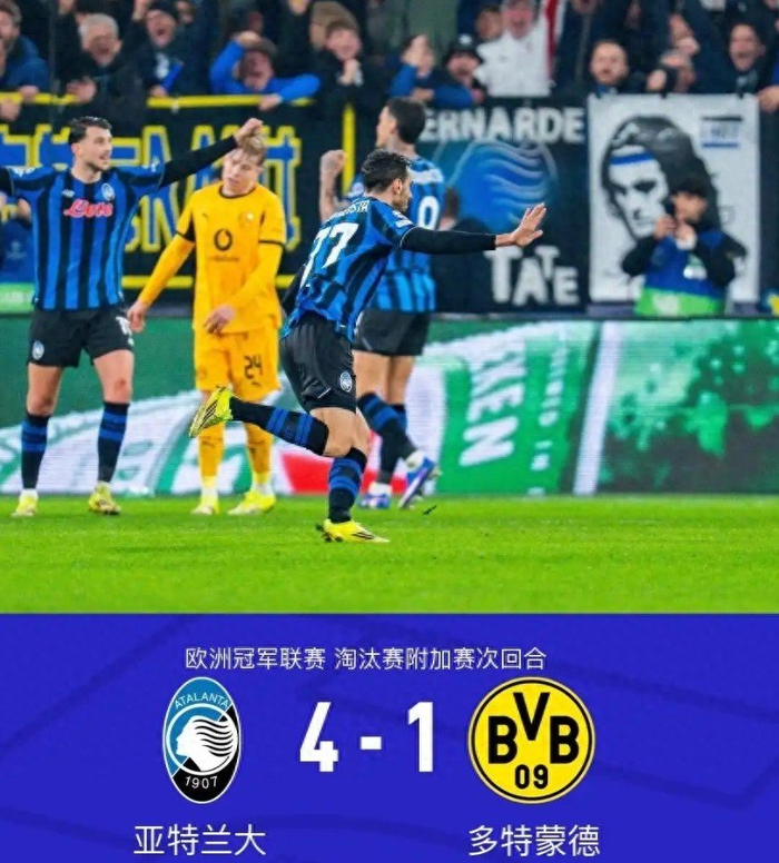 欧冠从来不缺奇迹,2月26日凌晨的这场1/8决赛附加赛次回合,直接把戏剧性拉到了顶点。亚特兰大在首回合0-2落后多特蒙德的绝境下,主场踢出4-1的疯狂比分,最后时刻靠点球完成绝杀,总比分4-3惊险晋级欧冠16强。更关键的是,随着国米、尤文等意甲强队纷纷出局,这支被球迷称作“真蓝黑”的球队,成了意甲在欧冠赛场的唯一独苗,硬生生保住了亚平宁足球的最后脸面。