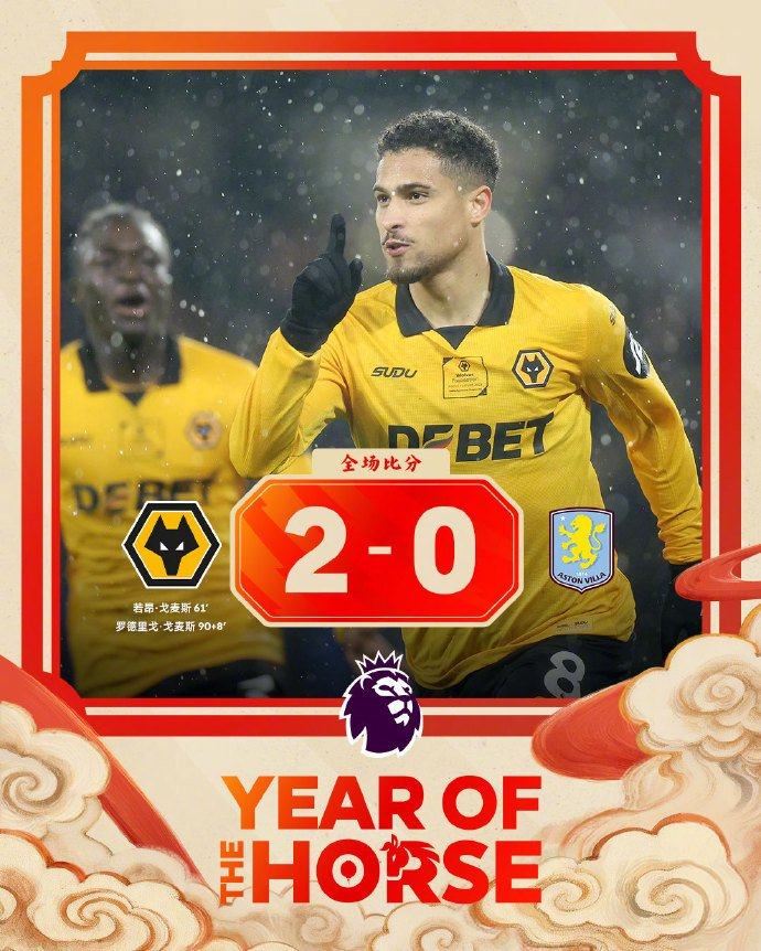 上半场,沃特金斯失良机;易边再战,若昂·戈麦斯破门,罗德里戈·戈麦斯替补读秒锁定胜局,最终狼队2-0阿斯顿维拉。积分榜方面,狼队收获赛季联赛第二胜积13分仍垫底,维拉51分第三。