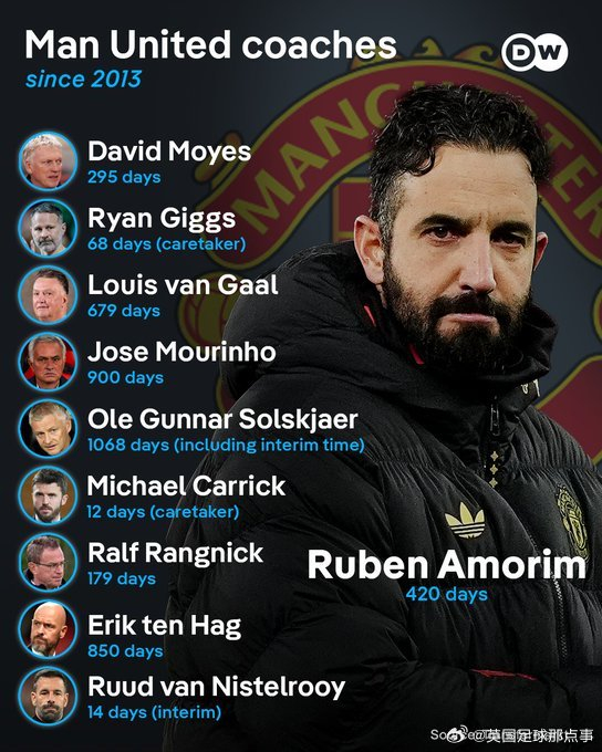DW:阿莫林是弗格森爵士退休以来,曼联的第10任主教练……(算上临时主帅)