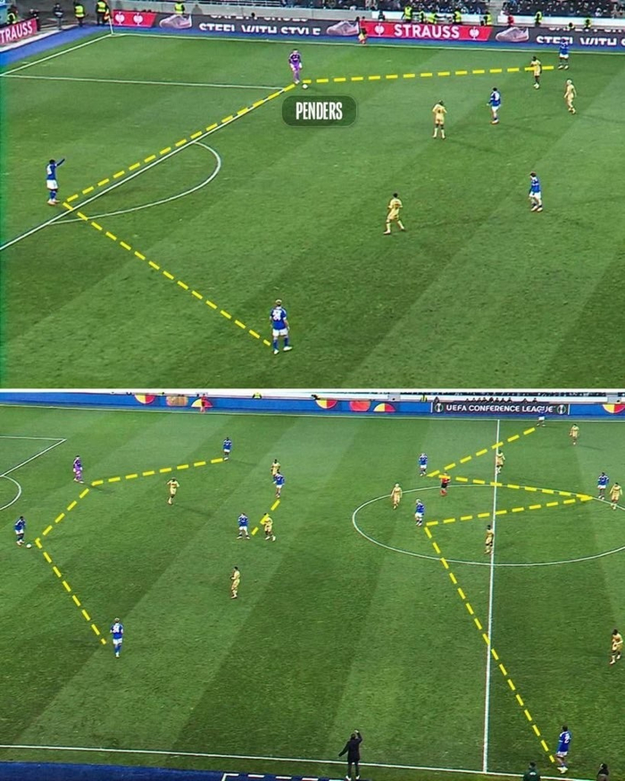 回顾罗塞尼尔的战术体系,最引人注目的特点,莫过于他对门将角色的重新定义。在斯特拉斯堡,门将彭德斯常常在控球阶段离开禁区,扮演额外的中后卫角色,这一创新使球队在组织进攻时形成人数优势。战术板上的3421阵型在实战中流动变化为3241甚至3223,具体形态取决于门将彭德斯的位置。当彭德斯作为居中中卫时,左右两个中卫可以大胆前插至中场区域,创造出局部多打少的优势局面。
