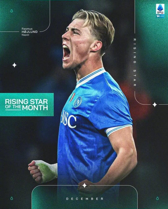 根据意甲官方公告,12月"月度新星"奖项将由那不勒斯球员拉斯姆斯-霍伊伦获得。