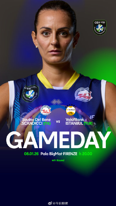 #2026女排欧冠# 正赛小组赛第3轮焦点之战:1月8日(四)+1 03:00 A组 意大利斯坎迪奇 vs 土耳其瓦基弗银行