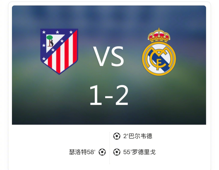 【皇马2-1马竞进西超杯决赛,巴尔韦德传射,罗德里戈破门】开场仅2分钟,巴尔韦德任意球世界波打破僵局,随后奥布拉克、库尔图瓦均贡献神扑,瑟洛特、罗德里戈错失良机。下半时罗德里戈扩大领先,瑟洛特扳回一球。全场战罢,马德里竞技1-2皇家马德里。