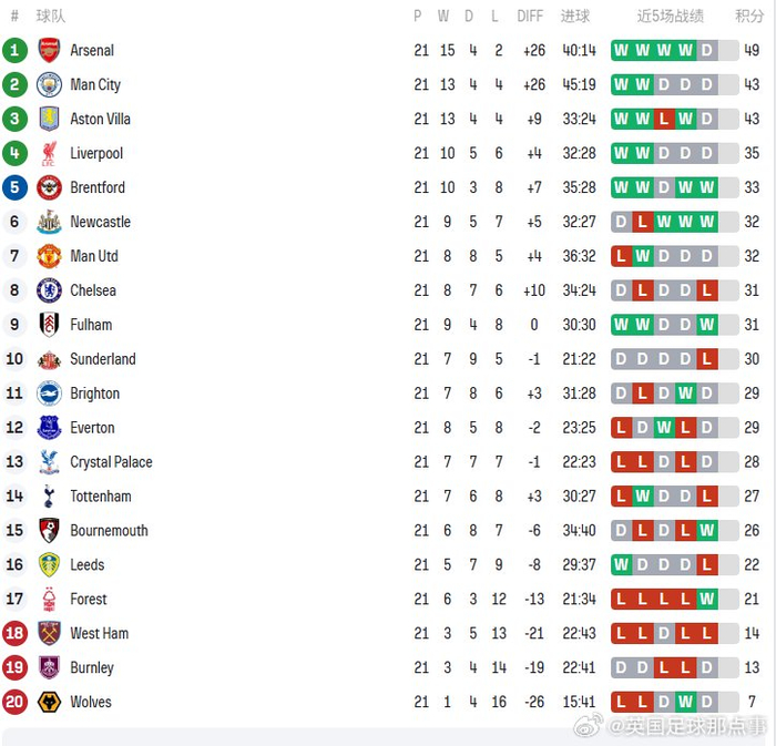 【积分榜】英超第21轮全部结束!你的主队排名第几?对主队的表现还满意吗🤔#阿森纳0比0利物浦#