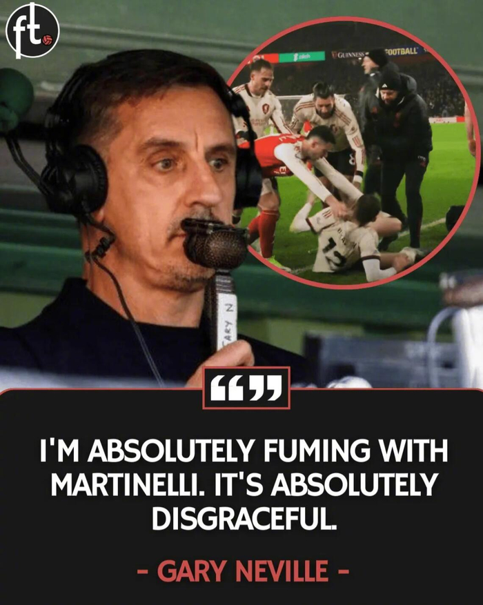 担任现场评述的加里-内维尔对此公开表达强烈不满:”布拉德利被担架抬下场了,这画面令人难过,因为这是他的老伤了。我对马丁内利简直气炸了。我真不知道利物浦球员怎么没冲过去狠狠干他,哪怕吃张红牌也行。简直太可耻了。“