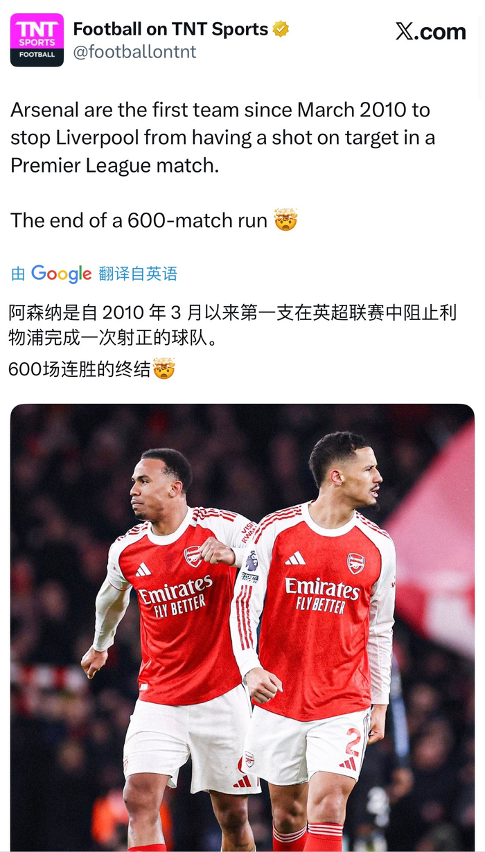这个记录有点夸张啊,即使对利物浦这场比赛厂弟们受困大雨没办法创造更多机会,基本盘还是非常稳,居然终结了利物浦连续600场都有射正的记录,上一次他们零射正还要追溯到2010年的三月份。不过,布拉德利上半场利用我们失误的射门非常接近进球,当时差点吓晕
