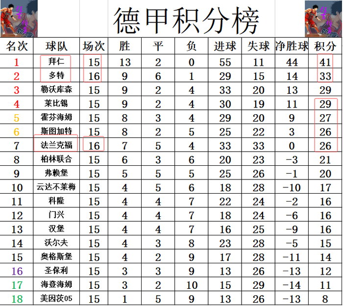 积分榜方面,多特今天先赛无力赢球,这样的话他们多赛一场落后拜仁8分,要是拜仁本轮能获胜,那拜仁将获得2位数的领先优势。法兰克福最后10秒3分变1分,也就错失了暂时追上勒沃库森和莱比锡冲进前5的机会。