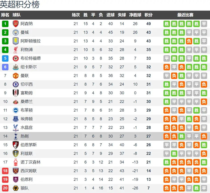 随着凯恩在拜仁持续进球,孙兴慜远走美职联,后孙凯时代的热刺彻底沦为英超“软柿子”。从澳波到弗里克,换帅并未扭转球队颓势。上赛季热刺虽英超表现不佳,尚能捧起欧联杯冠军;本赛季球队则全面拉胯,英超21轮战罢仅取得7胜6平8负,积27分排名第14位。