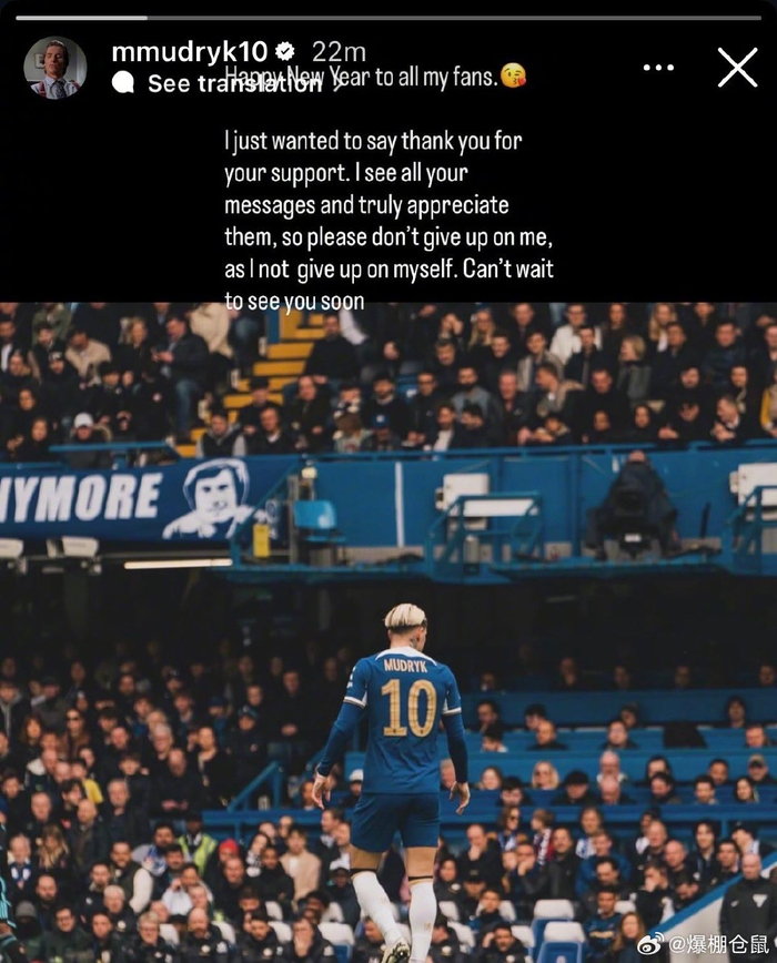 【不要放弃】24岁的切尔西前锋穆德里克因为兴奋剂呈阳性,已经一年多没踢过比赛了,他在社交媒体上发文表示感谢球迷一直以来的支持,并希望球迷不要放弃他,期待尽快再次相见。