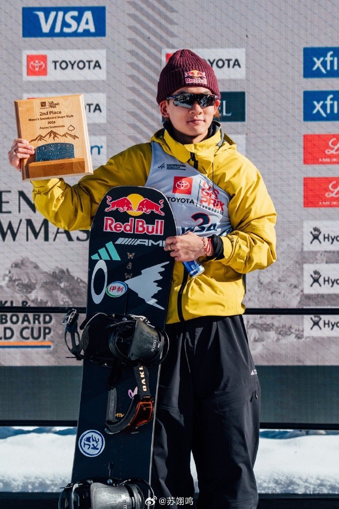 #苏翊鸣冬奥积分世界第一# 单板滑雪世界杯美国阿斯彭站@苏翊鸣 斩获亚军,本赛季收获第三枚世界杯奖牌,此站赛后,苏翊鸣的实时冬奥积分从第二位上升至第一位。赛后苏翊鸣更新微博表示很开心很享受,同时也会有遗憾,但更是前进的动力。