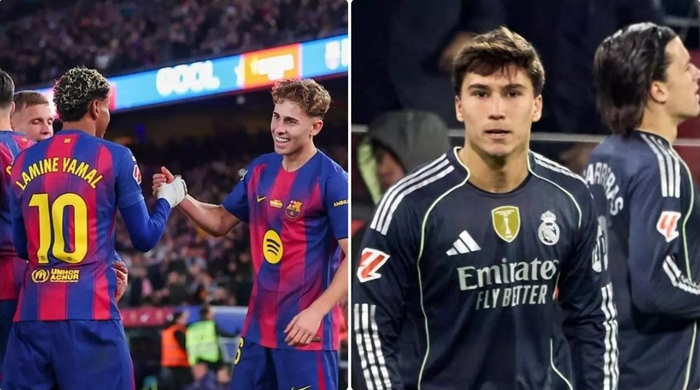 巴萨这边,青训球员已是进攻端的绝对核心。亚马尔9球领跑青训射手榜,费尔明8球紧随其后,两人联手贡献17球;助攻榜上亚马尔同样一骑绝尘,送出11次助攻,费尔明也有8次助攻入账。出场时间上,巴萨青训累计登场10857分钟,11名青训球员获得一线队机会;皇马青训的出场时间仅为5071分钟,且仅有8人得到亮相机会。#巴萨vs皇马#