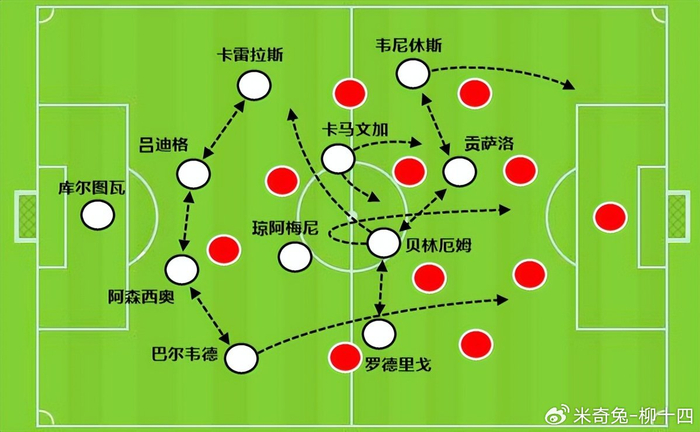 当贝林厄姆回到前腰位置,他跟贡萨洛不断压迫马竞的中路出球点,使得马竞只能把球向两侧分,结果卡雷拉斯和巴尔韦德都具备身体优势,奠定了胜利的基础。