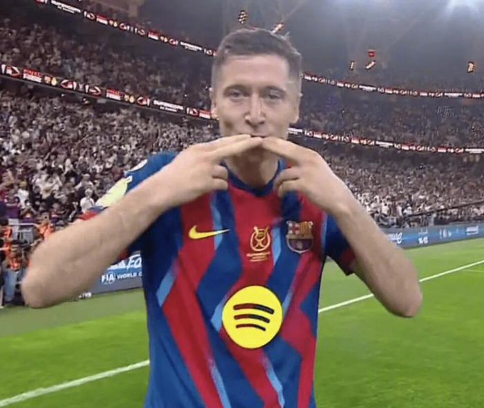 本场比赛,莱万在上半场伤停补时阶段攻入一球。至此,他职业生涯已经12次攻破皇马球门。在21世纪攻破皇马球门排行榜上,莱万也升至并列第二位。