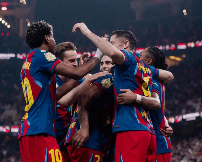 巴萨3比2皇马蝉联西超杯冠军,德容红牌赛后获8.7分