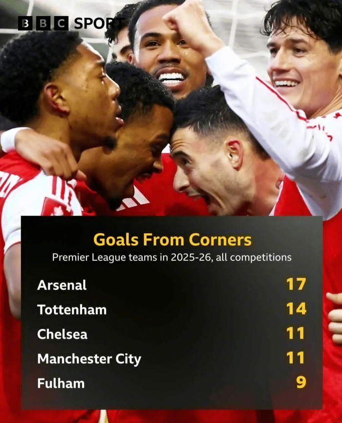 #朴茨茅斯1比4阿森纳# 比赛中,阿森纳三次通过角球制造进球。至此,在英超球队本季通过角球制造进球的榜单上,他们继续领跑。