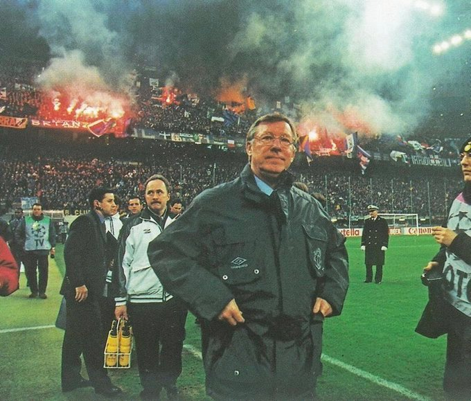 【老照片】 #欧冠联赛# Sir Alex Ferguson at the San Siro 🏟️