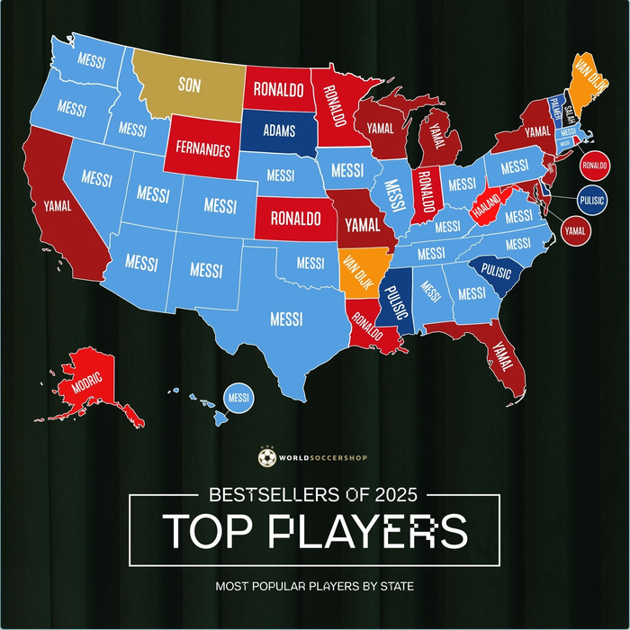 📰美国足球装备零售商WorldSoccerShop发布其2025年销售榜单(按州统计):