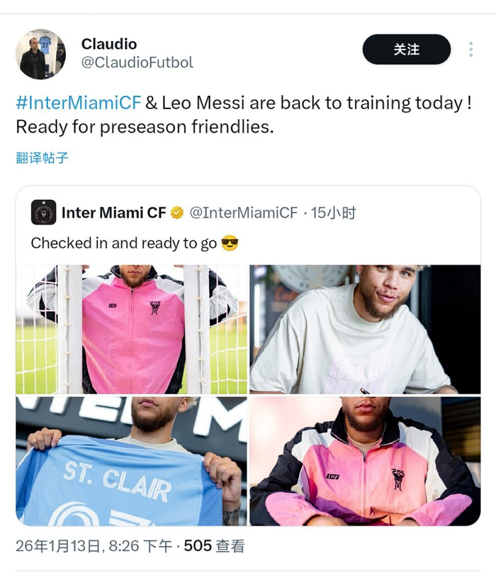 记者:迈阿密国际和梅西今天开始恢复训练,开始备战季前赛!