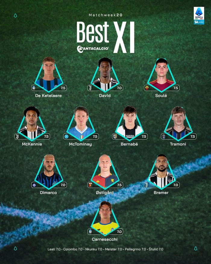 【官方】 2025-26赛季#意甲联赛# 第20轮最佳阵容。