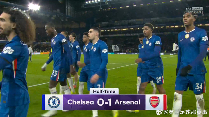 半场结束,切尔西暂0-1落后阿森纳