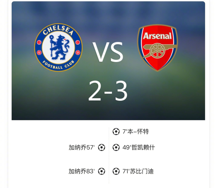 加纳乔双响助切尔西2比3不敌阿森纳,赛后获9.5高分