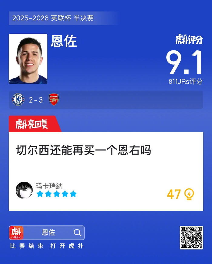 #切尔西2比3阿森纳# 恩佐这场表现,你觉得踢得如何?