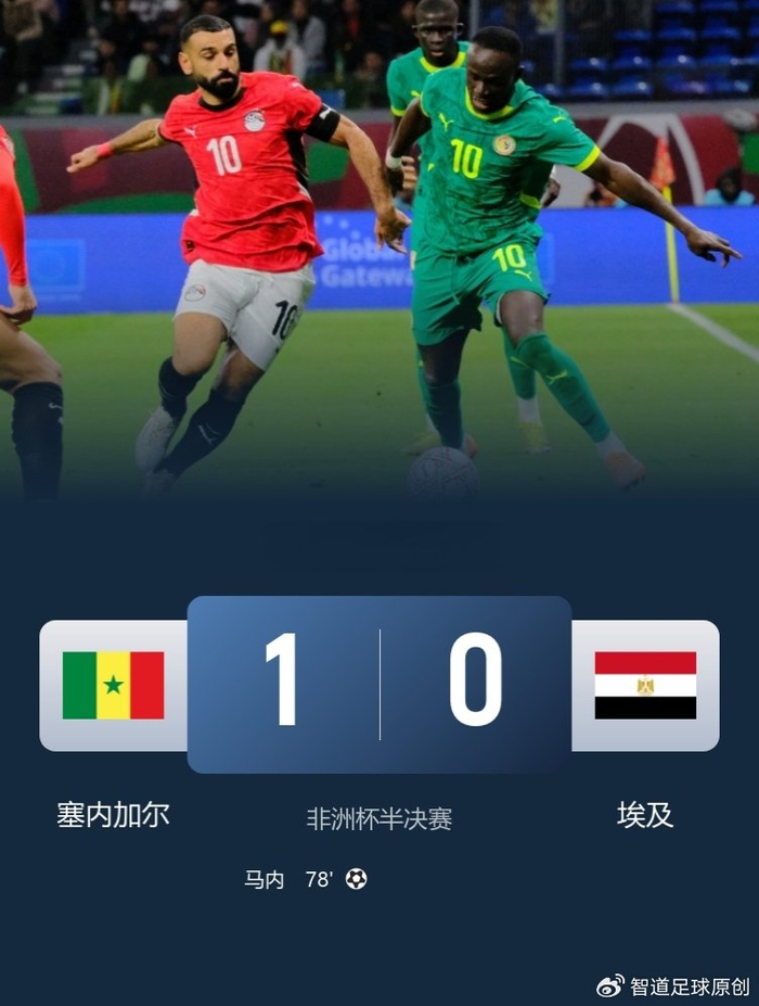 非洲杯半决赛回顾:塞内加尔1-0小胜埃及晋级,马内比赛第78分钟贴地斩打入全场唯一的进球,埃及全场仅有1次射正!马内击败了前利物浦对手萨拉赫。