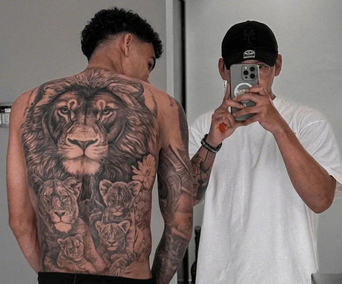 拜仁慕尼黑边锋路易斯·迪亚斯近日透露了一处隐藏超过半年的个人纹身——其背部正进行着一幅以“保护家人”为主题的巨型狮子图案创作。