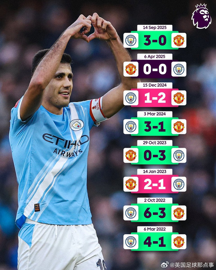 英超官方回顾曼市德比最近8场战绩:曼城5胜1平2负占优👀#曼联vs曼城#