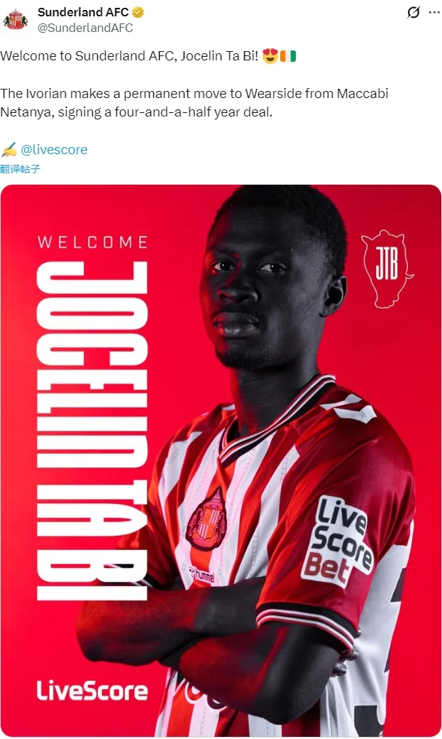 官方:桑德兰宣布从内坦亚马卡比俱乐部签下了塔比,这名20岁的边锋签下了一份为期四年半的合同,附带延长一年条款。