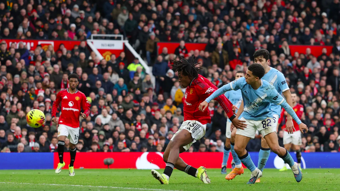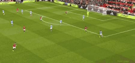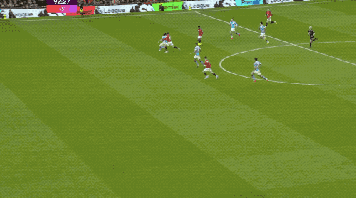 第39分钟,曼城在曼联的30米区域连续传递,罗德里送上妙传,塞梅尼奥的射门稍稍偏出。