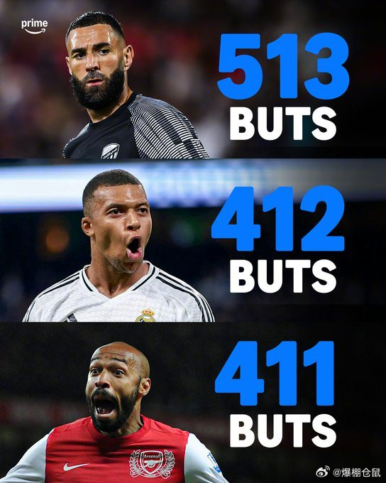 【里程碑】皇马前锋姆巴佩在对莱万特的比赛中点射破门,打入职业生涯第412球,他超越亨利,成为法国足球历史上职业球员进球第二多的球员,仅次于513球的本泽马。