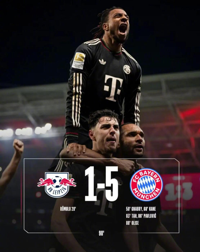 #rb莱比锡1比5拜仁# 至此,拜仁已连续27场德甲比赛保持不败。同时拜仁也追平了俱乐部1988/89赛季创下的队史第二长纪录。