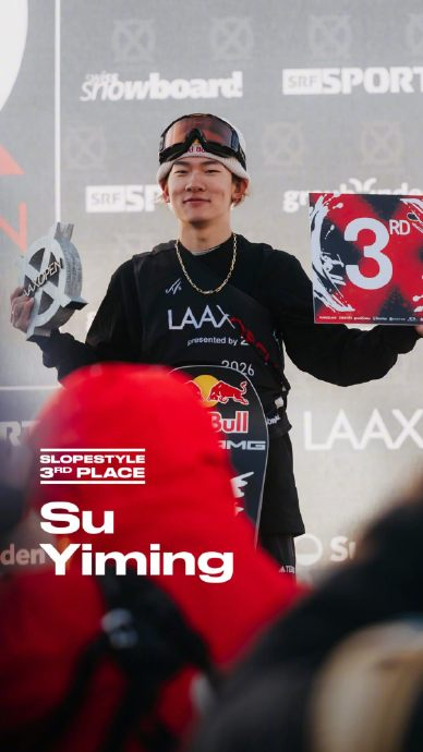 #苏翊鸣铜牌# 单板滑雪坡面障碍技巧世界杯莱克斯站决赛,中国选手@苏翊鸣 凭借第一滑得到的76.10分,获得一枚铜牌。苏翊鸣本赛季在大跳台和坡面障碍的状态非常稳定,两金一银一铜在本赛季单板世界杯积分排名中位列第一。#苏翊鸣喷香槟#
