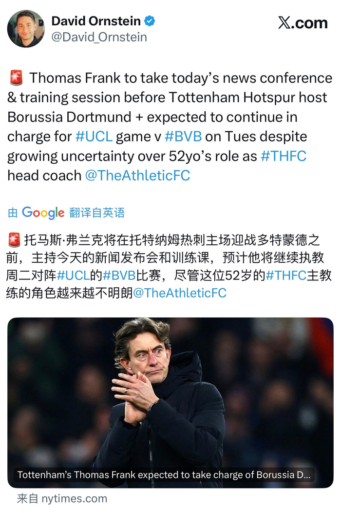 弗兰克暂时还能苟住,不过估计待不到北伦敦德比了