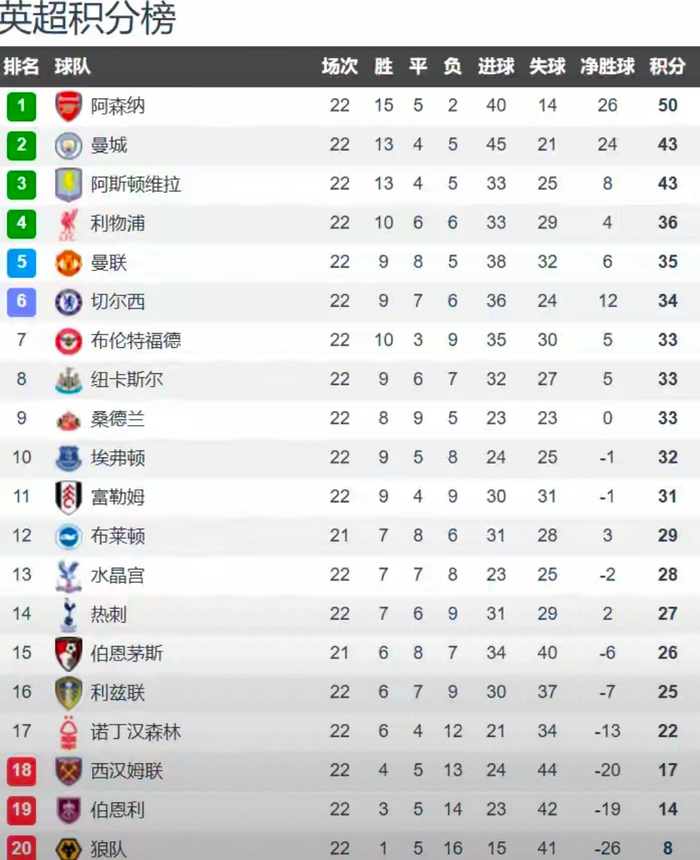 英超22轮战罢,阿森纳以7分优势领跑曼城。尽管枪手近期遭遇两连平丢分,且中锋进球效率饱受诟病,但凭借角球战术、乌龙球红利以及稳固防线,依旧占据争冠主动。反观曼城上赛季四大皆空后状态低迷,近段时间1平4负狂丢11分,德布劳内离队后瓜迪奥拉的传控战术失灵,哈兰德更是近7轮仅靠点球破门,硬仗能力备受质疑。利物浦同样陷入4轮不胜的泥潭,英超争冠俨然成为阿森纳的独角戏,这份领先优势,更多是得益于竞争对手的集体掉链子。
