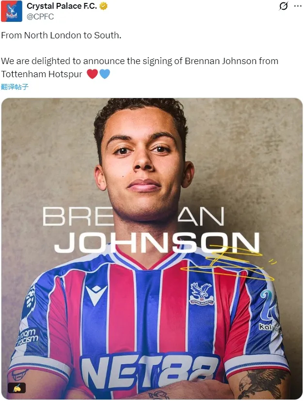 官方:水晶宫宣布从热刺签下了布伦南-约翰逊。