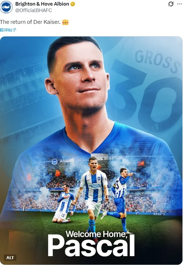 官方:布莱顿宣布从多特蒙德签回了34岁的中场帕斯卡尔-格罗斯!交易为直接转会。去年夏天,格罗斯刚刚从布莱顿转会加盟多特蒙德。