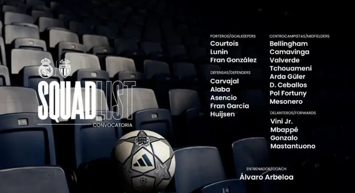 北京时间1月21日明晨4点,欧冠小组第7轮开战,皇马将在主场迎战摩纳哥。目前皇马6战4胜2负积12分排在第7位,主场作战,皇马必须要争胜。这也是阿韦罗亚执教皇马的欧冠首秀,皇马官方已经公布了本场比赛大名单,具体如下: