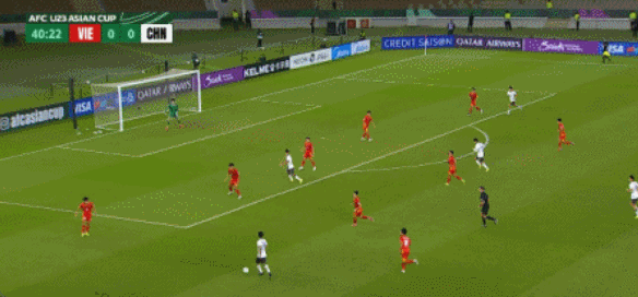 随着比赛的进行,中国队的控球率不断提升,最多时候达到65%,基本压着打,也跟越南队采取防守反击战术有一定关系。第41分钟,鲍盛鑫传中到门前,杨希跟进头球没有顶到,中国队差一点取得进球。