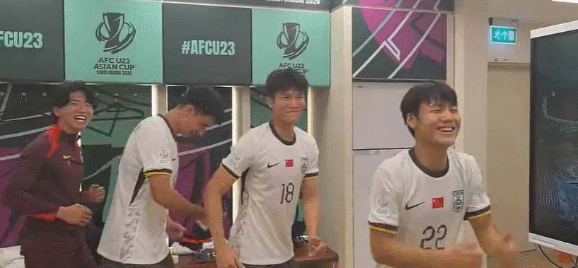 比起越南队惨败出局非常失落,中国队在比赛结束之后,回到更衣室疯狂庆祝晋级,球员们转圈魔性舞步,十分开心,气氛也非常嗨。